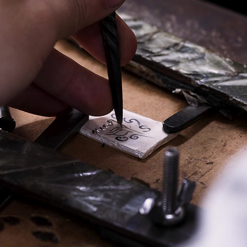 Every Benivar piece is meticulously crafted through a series of precise and artful steps. It begins with a creative concept, where inspiration takes shape. The design is then brought to life through silver melting, forming the foundation of the piece. Next comes engraving, adding intricate details that define its character. Afterward, the piece undergoes fire patination, creating unique tones and depth. Finally, polishing perfects the surface, revealing a luminous finish.